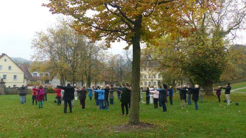 Ein Prinzip lautet:"Relax completely". Dabei streichen die Hände in einer Bewegung von den Achselhöhlen nach unten ... dazu haben wir am Ende eine spezielle "Festivalversion" ausprobiert.